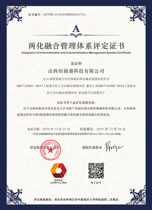 自2023年9月兩化融合貫標(biāo)工作啟動(dòng)以來,公司相關(guān)工作人員秉持著高度的敬業(yè)精神與專業(yè)素養(yǎng),全力以赴投入到項(xiàng)目的各個(gè)環(huán)節(jié)中,經(jīng)過近一年四個(gè)月的努力,終于成功達(dá)成目標(biāo),于2024年12月27日取得兩化融合管理體系A(chǔ)級(jí)評(píng)定證書。兩化融合貫標(biāo),即貫徹《信息化和工業(yè)化融合管理體系》系列標(biāo)準(zhǔn),是企業(yè)圍繞獲取可持續(xù)競(jìng)爭(zhēng)優(yōu)勢(shì),將信息化與工業(yè)化深度融合的過程。此項(xiàng)目旨在推動(dòng)企業(yè)打造信息化環(huán)境下的新型能力,如數(shù)字化研發(fā)設(shè)計(jì)能力、智能化生產(chǎn)能力等。我公司作為傳統(tǒng)制造業(yè)企業(yè),在轉(zhuǎn)型升級(jí)過程中通過兩化融合貫標(biāo)可實(shí)現(xiàn)生產(chǎn)方式、管理模式的變革,以應(yīng)對(duì)激烈的市場(chǎng)競(jìng)爭(zhēng),提升企業(yè)競(jìng)爭(zhēng)力,為公司創(chuàng)造新的增長(zhǎng)點(diǎn)。山西省對(duì)兩化融合貫標(biāo)企業(yè)有相應(yīng)的獎(jiǎng)勵(lì)政策,企業(yè)可以獲得資金支持和政策優(yōu)惠,有助于企業(yè)的持續(xù)發(fā)展和壯大。